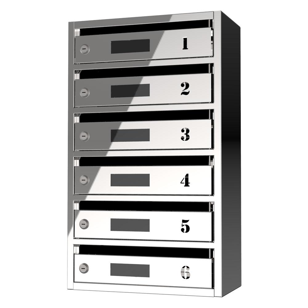Поштова скринька «Window» (PWPB-06) – це шестисекційний поштовий ящик з щілинним отвором для вкладання кореспонденції.