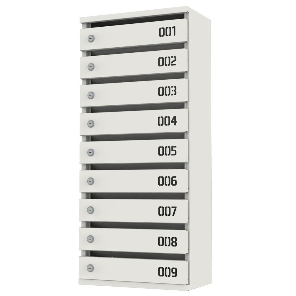 Поштова скринька «Frame» ( FRPB-09) – це дев’ятисекційна поштова скринька зі щілинним отвором для вкладання кореспонденції.